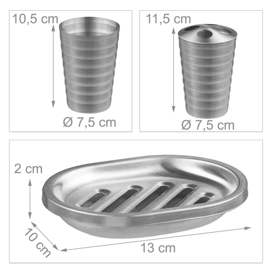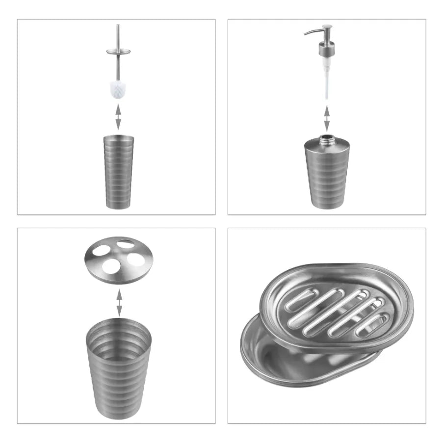 5 CZĘŚCIOWY ZESTAW ŁAZIENKOWY MYDELNICZKA SZCZOTKA MAT SREBRNY