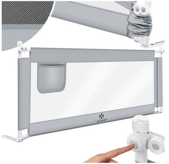 Barierka do łóżka KESSER szara regulowana 180 cm 72-96 cm