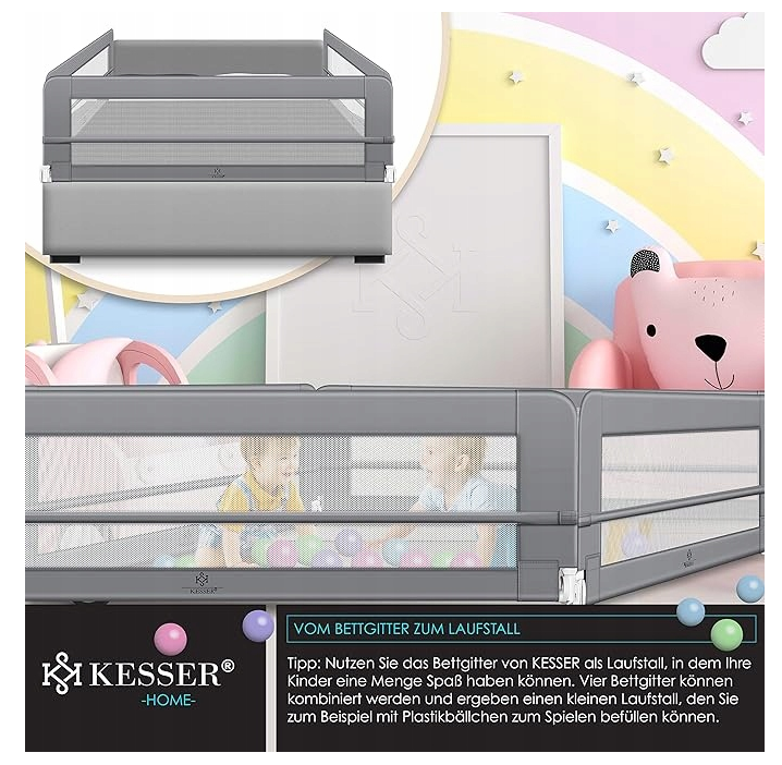 KESSER Bariera do łóżka dla małych dzieci - Zabezpieczenie przed wypadnięciem - Bezpieczny i komfortowy sen