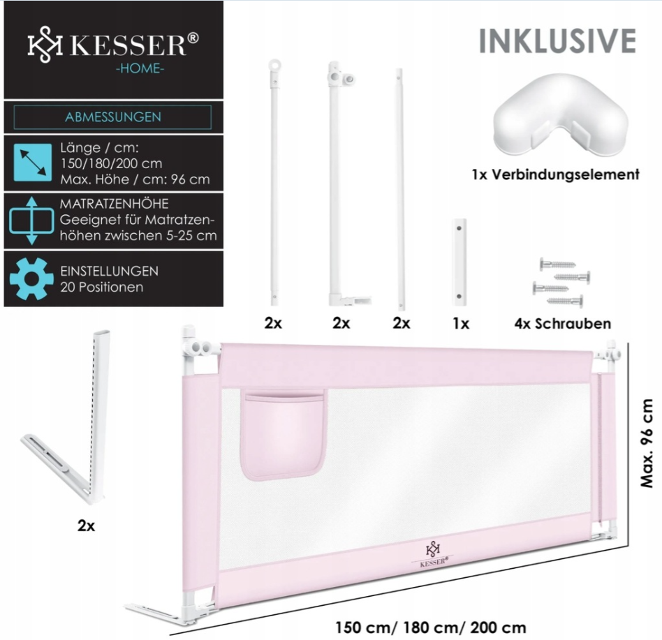 Barierka do łóżka KESSER to bezpieczne i praktyczne rozwiązanie dla dzieci, które śpią niespokojnie. Chroni przed wypadnięciem z łóżka i stanowi świetną alternatywę dla klasycznych łóżeczek. Montowana z boku standardowego łóżka, idealna także w podróży – zajmuje niewiele miejsca.