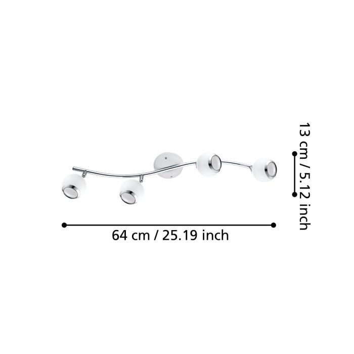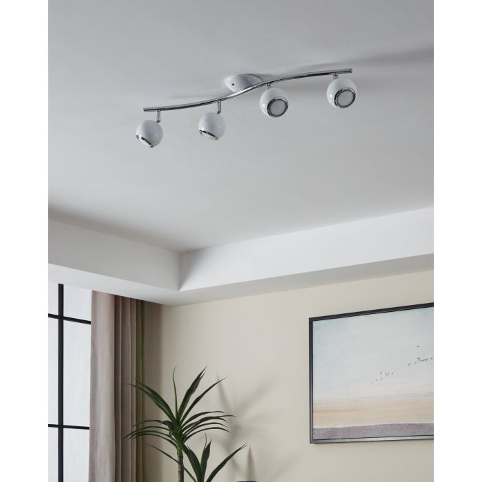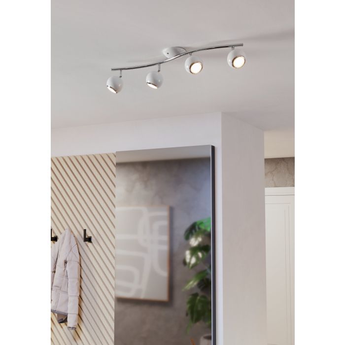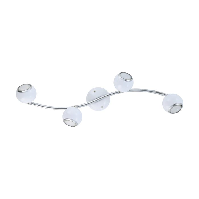 Lampa sufitowa LED BIMEDA wykonana jest z białego metalu i ma chromowane detale. Dzięki dołączonym żarówkom LED GU10 cztery ruchome, kuliste punkty na lekko zakrzywionym ramieniu lampy zapewniają przyjemne, ciepłe, białe światło i zapewniają ukierunkowane oświetlenie pomieszczenia. Plafon punktowy o nowoczesnym designie idealnie pasuje do różnych stylów życia - czy to w kuchni, salonie, sypialni czy przedpokoju.