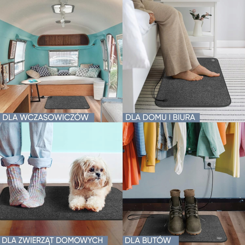 Mata doskonale sprawdzi się także jako źródło ciepła dla domowych pupili. Może być używana jako ogrzewane miejsce odpoczynku dla psa lub kota w chłodne dni, zapewniając im przytulny komfort i bezpieczne ciepło.