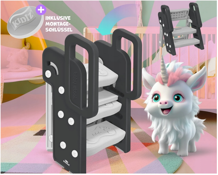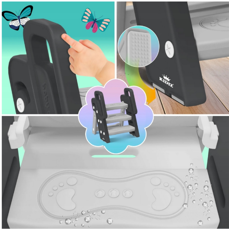 Regulowana drabinka dla dzieci z podestem KIDIZ to praktyczne i bezpieczne rozwiązanie, które pomaga maluchom samodzielnie sięgać do wyższych powierzchni – zlewu, blatu czy umywalki. Stabilna konstrukcja z antypoślizgowymi stopniami oraz regulowanym podestem dostosowuje się do wzrostu dziecka, wspierając jego rozwój i niezależność. Idealna do łazienki, kuchni lub pokoju dziecięcego. Nowoczesny design i bezpieczne zaokrąglone krawędzie sprawiają, że drabinka pasuje do każdego wnętrza.