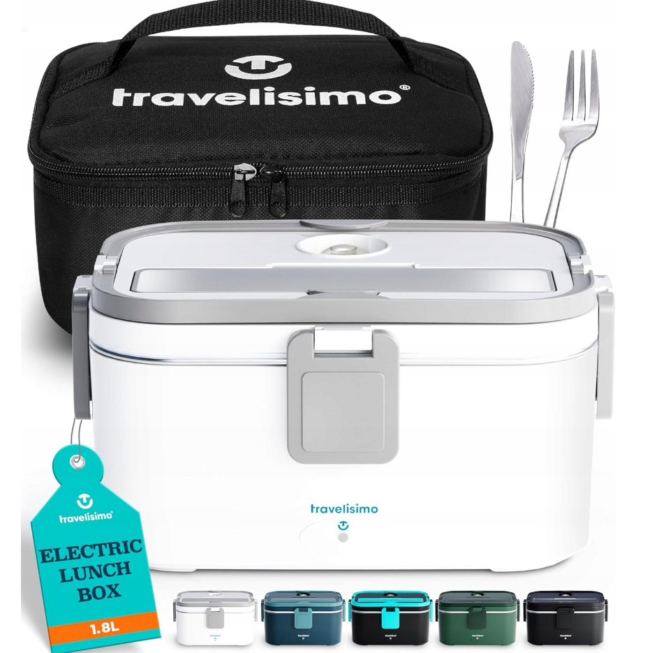 TRAVELISIMO Elektryczna Lunchbox 80W Pojemnik na jedzenie Ciepły obiad, 1,8L Pojemnik do podgrzewania żywności 3-w-1 Lunchbox elektryczny 12V/24V/220V, Pojemnik do zabrania ze sobą do pracy, samochodu, ciężarówki Elektryczna Lunchbox