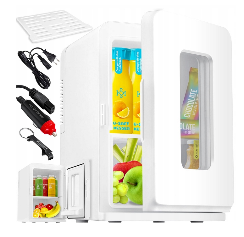 Kompaktowa lodówka o pojemności 15 l, idealna w domu, biurze, hotelu, na kempingu lub w samochodzie. Wyposażona w funkcję chłodzenia (4–8°C) i podgrzewania (55–65°C), umożliwia przechowywanie napojów, potraw i kosmetyków w odpowiedniej temperaturze.