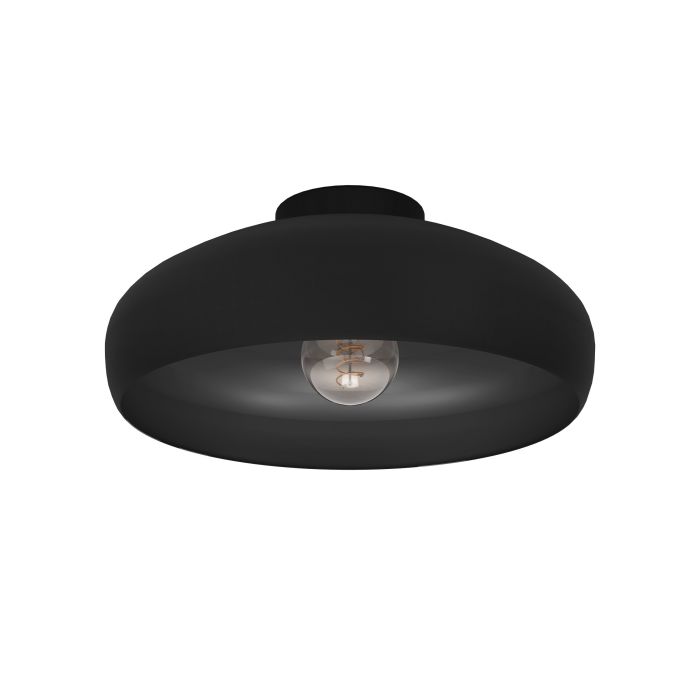 Plafon, oprawa sufitowa serii MOGANO. Obudowa wykonana z metalu w kolorze czarnym. Źródło światła to jedna żarówka E27 o mocy maksymalnej 60W (nie stanowi zakresu dostawy). Plafon o średnicy 40 cm sprawdzi się m.in. w kuchni, salonie, w przedpokoju lub w jadalni. Metalowy klosz sprawia, że światło skierowane jest w dół.
