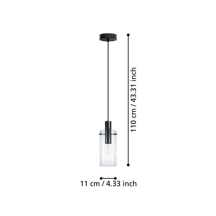 Lampa wisząca serii MONTEFINO. Oprawa posiada szklany, przezroczysty klosz, który zwieszony jest na czarnym przewodzie. Przezroczysty, szklany klosz umożliwia bezpośredni widok źródła światła. W lampie sprawdzą się dekoracyjne, podłużne żarówki w stylu vintage. Lampa wisząca optymalnie dopełnia nowoczesne style wyposażenia i oferuje stylowe oświetlenie w salonie lub jadalni. Przedstawiona żarówka nie jest objęta zakresem dostawy. Lampa szczególnie nadaje się do podłużnych lamp z trzonkiem E27.