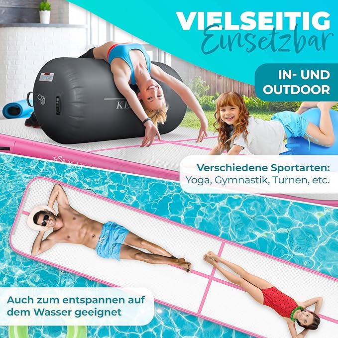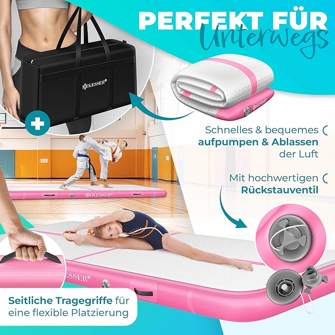 Zadbaj o wygodny i bezpieczny trening w dowolnym miejscu. Wybierz nadmuchiwaną matę gimnastyczną KESSER 3 m i ćwicz bez ograniczeń.
