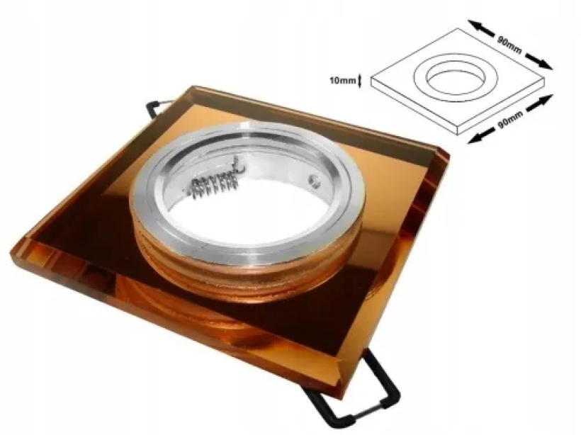 Otwór montażowy 58mm. Szerokość całkowita oprawy to 90mm. Oprawa pasuje do standardowej żarówki Gu10 230V (50mm) oraz Mr16.