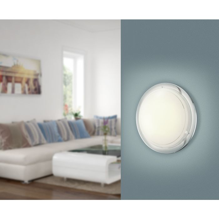 Lampa sufitowa PLANET 1 składa się z okrągłego metalowego korpusu w kolorze chrom i szklanego klosza. Przezroczysty pierścień na krawędzi lakierowanej na biało pokrywy dyskretnie dopełnia projekt. Dzięki ponadczasowemu wyglądowi lampa sufitowa doskonale pasuje do niemal każdego stylu wyposażenia i nadaje się do każdej przestrzeni mieszkalnej - czy to w kuchni, salonie, sypialni czy przedpokoju. Plafon o średnicy 29 cm. Żarówka nie wchodzi w zakres dostawy. Do lampy pasują żarówki z trzonkiem E27.