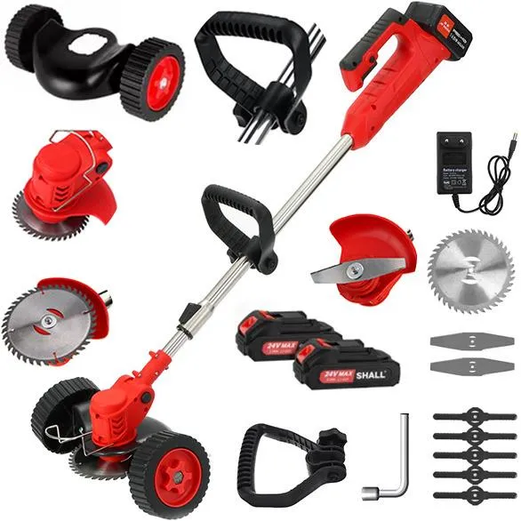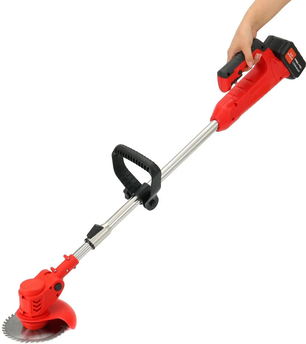 Bezprzewodowa podkaszarka do trawy i chwastów, idealna do ogrodu, działki i przydomowego trawnika. Dzięki kołom prowadzącym i niskiej wadze zapewnia komfortową pracę bez zmęczenia rąk.