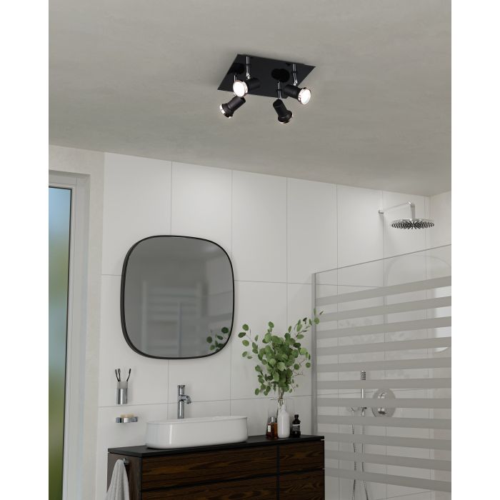 Punktowy, reflektor sufitowy LED TAMARA 1 składa się z czarnego metalu i kwadratowej szklanej płytki. Plafon jest bryzgoszczelny (IP44) i bez obaw może być stosowany w łazience. Szlachetny design wsparty jest starannie zastosowanymi chromowanymi detalami. Dołączone źródło światła LED GU10 zapewnia przyjemne, ciepłe, białe światło. Plafon łazienkowy z czterema źródła światła idealnie wpasowuje się w nowoczesne pomieszczenia i oferuje stylowe oświetlenie w łazience.