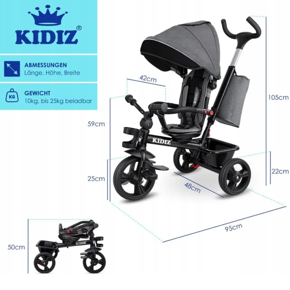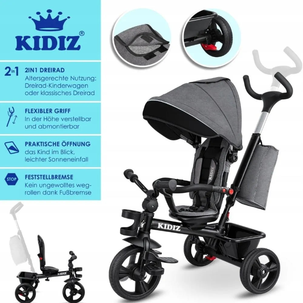 Poznaj KIDIZ Trójkołowiec 5w1 – funkcjonalny, bezpieczny i komfortowy środek transportu, który dostosowuje się do wieku i potrzeb dziecka. Od wózka po samodzielny trójkołowiec – jeden produkt na wiele lat!5w1 – Trójkołowiec, który się zmienia