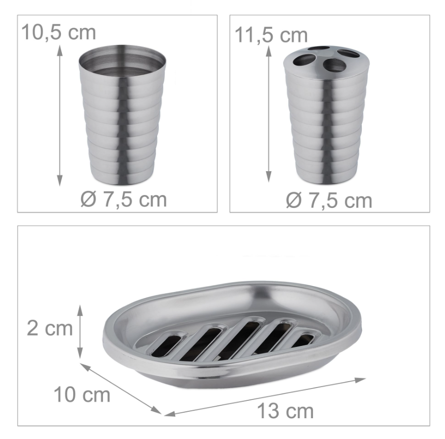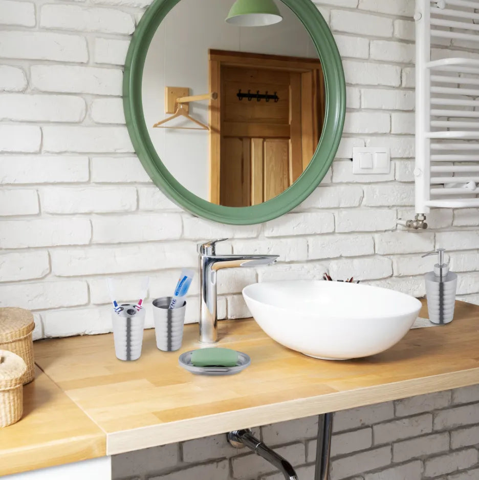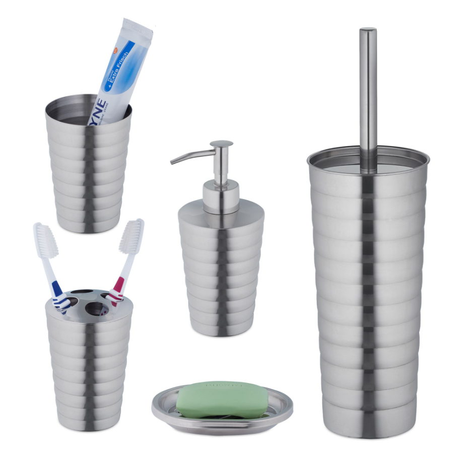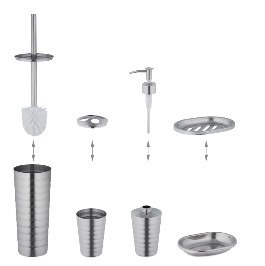 ZESTAW ŁAZIENKOWY 5-ELEMENTOWY SREBRNY BŁYSK STAL NIERDZEWNA